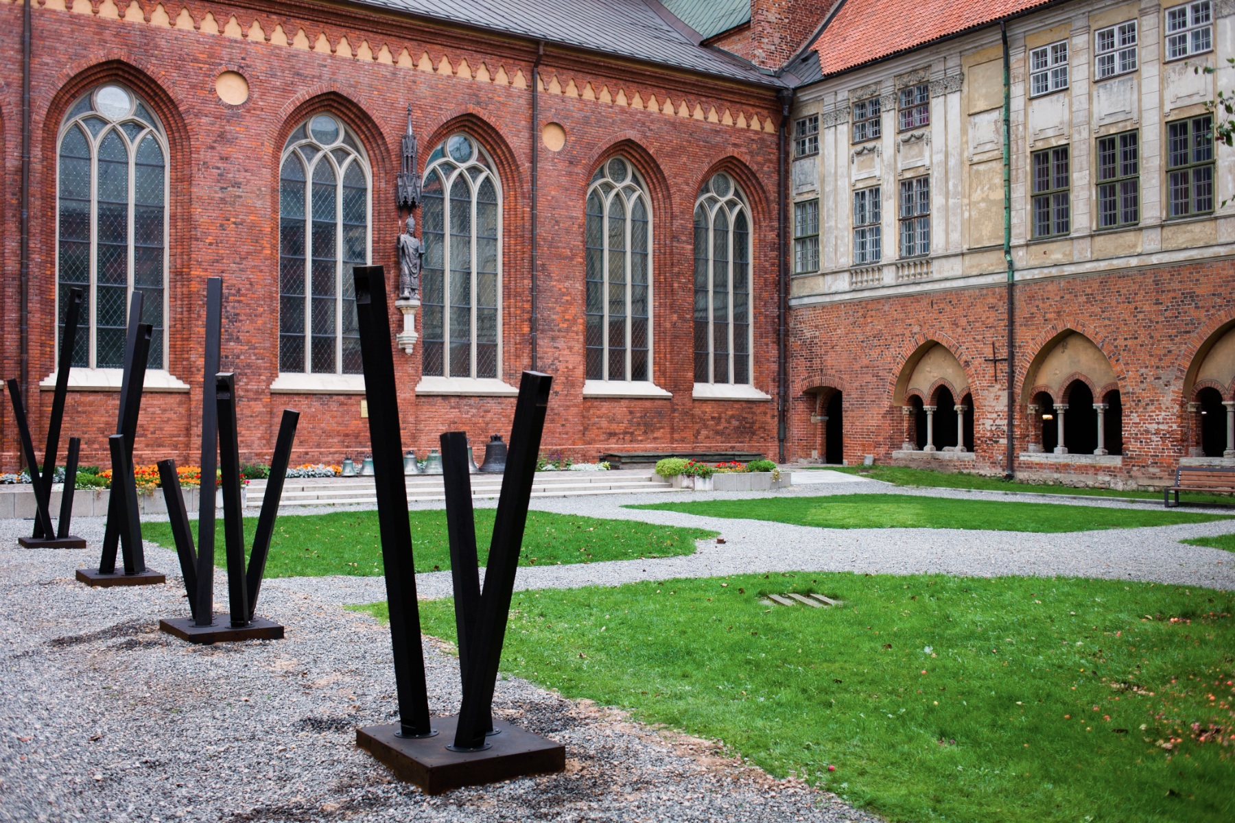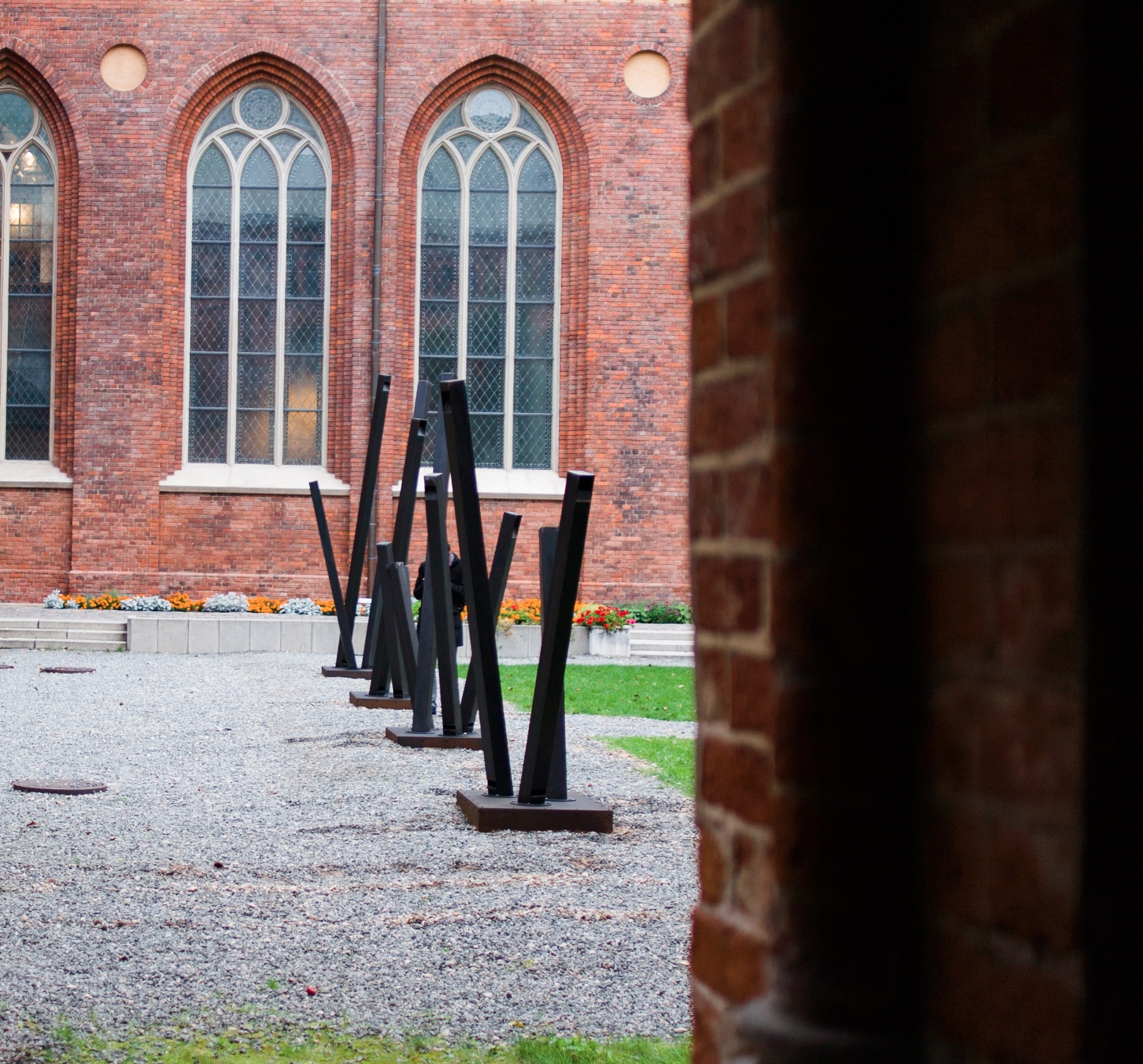 Standing waves is a series of sculptural compositions of steel pipes that produce chords of low tones. The sounds are produced by the square steel pipes that are built in close resemblance to flue pipes of a traditional pipe organ. They are tuned to a musical scale and the sound produced by each one is function of it’s length. The title of the work refers to the acoustic mechanism of sound production that occurs inside of organ pipe. The tone produced is determined by the wavelength that fits exactly within the length of a given pipe. Other physical characteristics of the sound such as the overtone spectrum are directly linked to the design of the flue pipe.