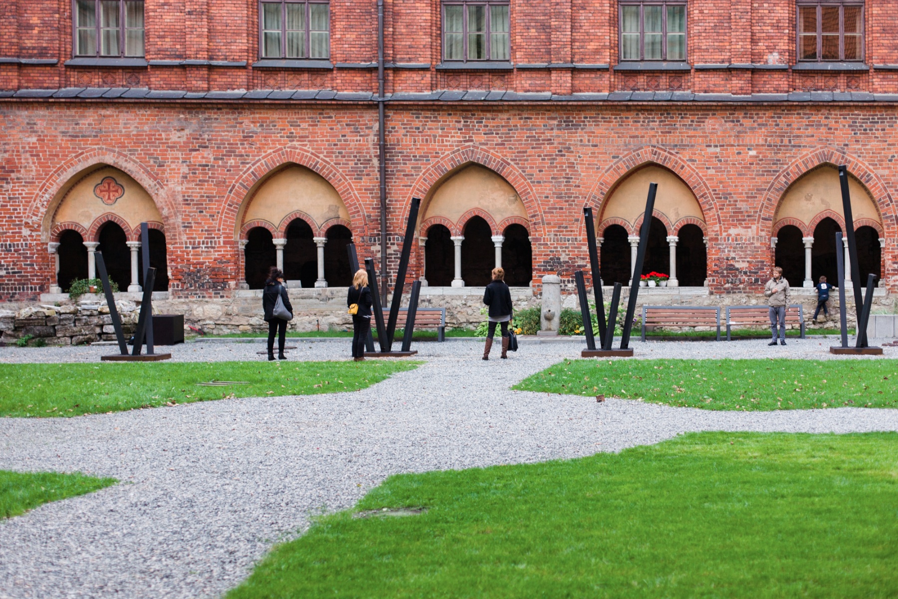 A composition of 14 steel pipes ranging from 150 to 400 cm in size,