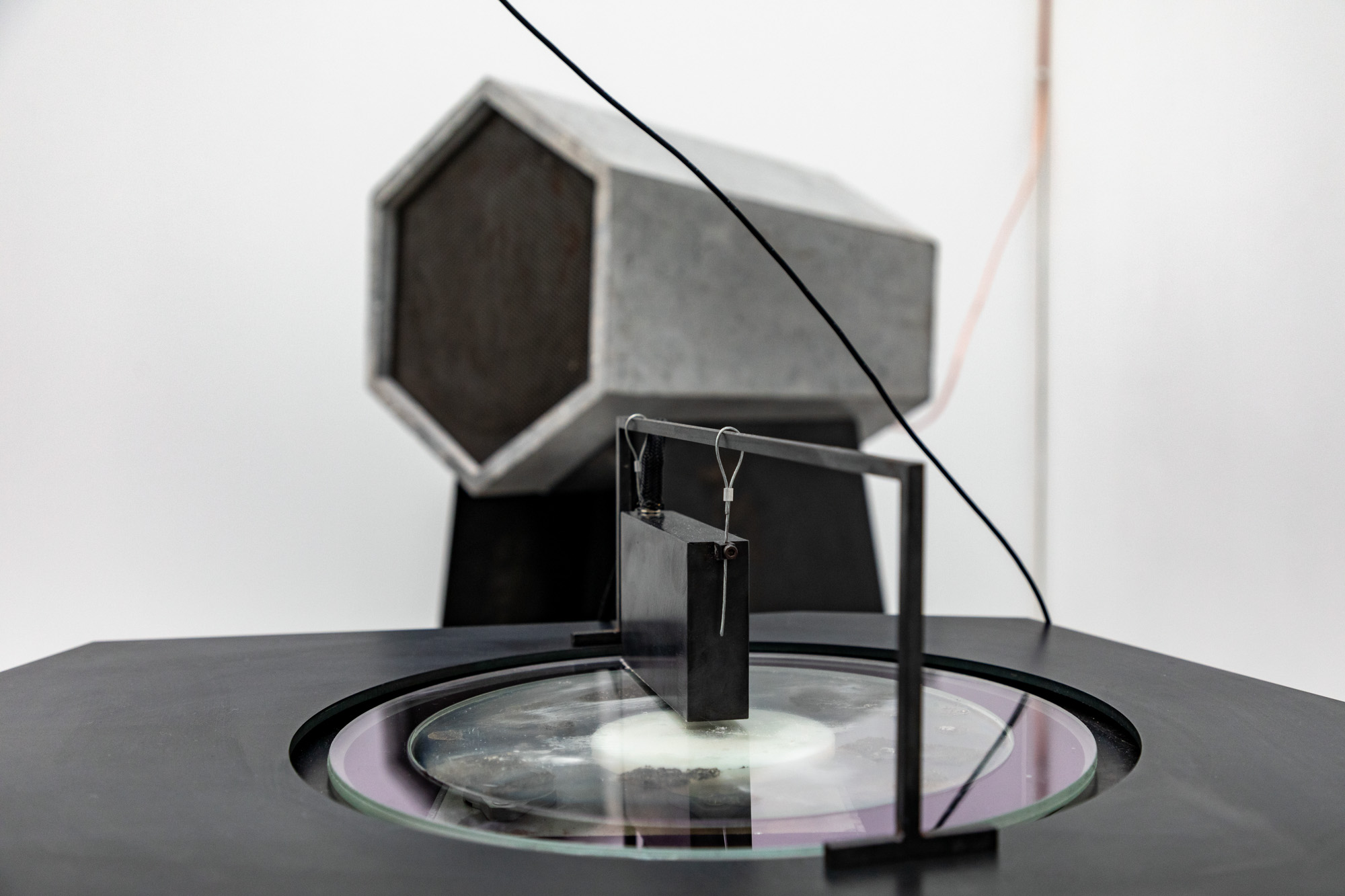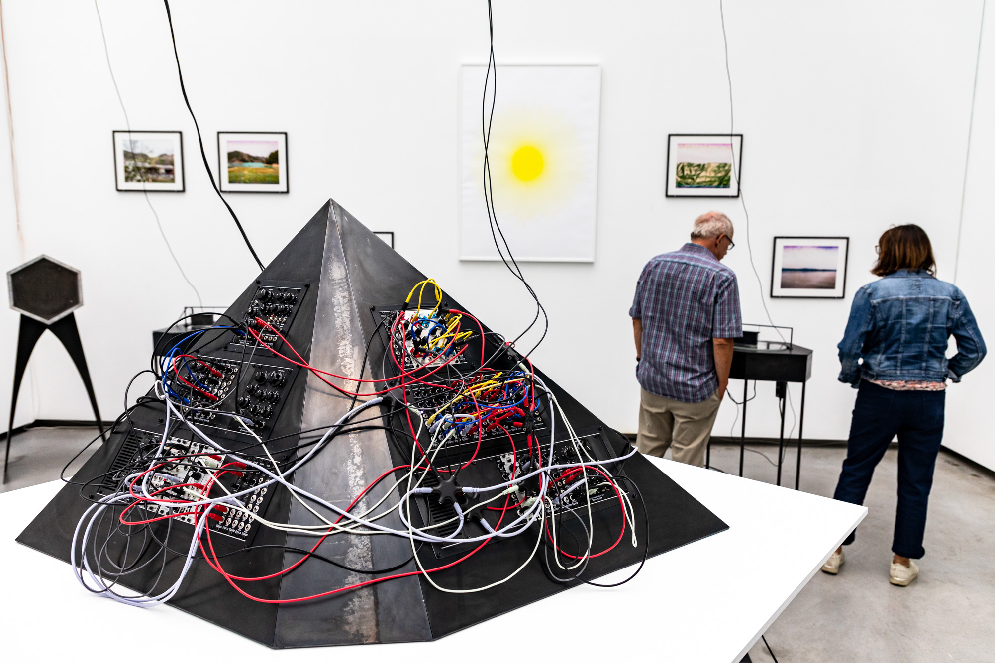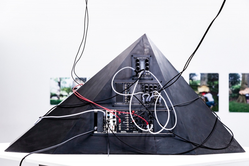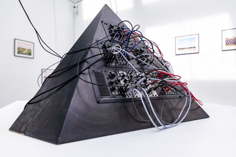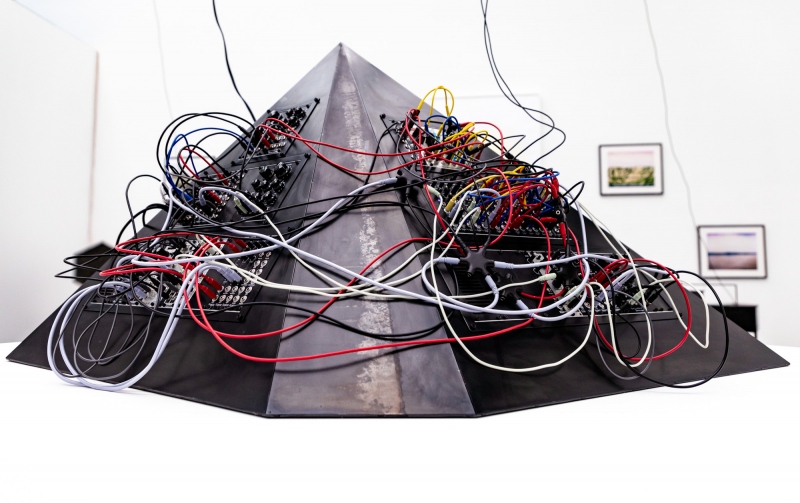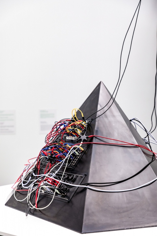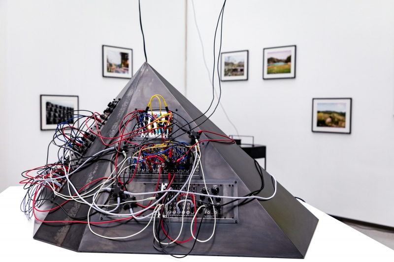 Un/Green at the Latvian National Museum of Art, RigaUncertainty Drive is a sonic environment. At the heart of it's real-time composition lies a natural source of constrained randomness that is presented via a computational process to render results as a sound composition. The artwork illustrates the emission of ionised particles by means of sonification. The fluctuating element of randomness within this construction is delta time interval between two consecutive impulses which cannot be precisely predicted. The detected impulses serve as input data to a complex network of signal functions that form an analog computer designed to render results as an audible representation of emissions.